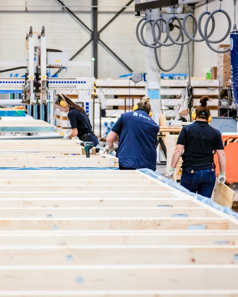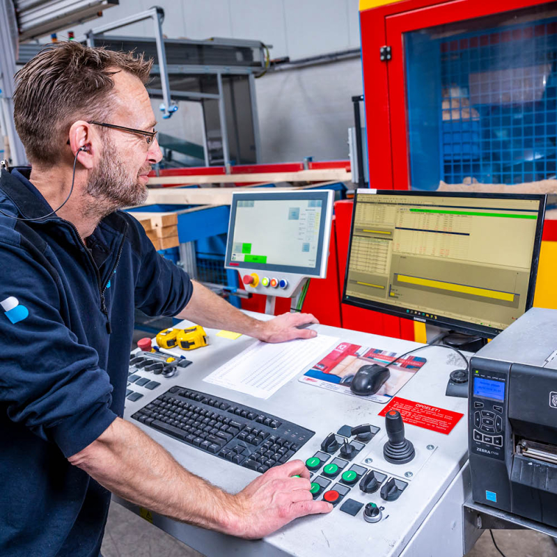 Is er storing? Dan wacht je niet af. Je stapt direct de juiste hal binnen, zoekt de oorzaak en lost het op. Dat kan een kraan zijn, een opdeelzaag, een framing station of de geautomatiseerde productielijn.