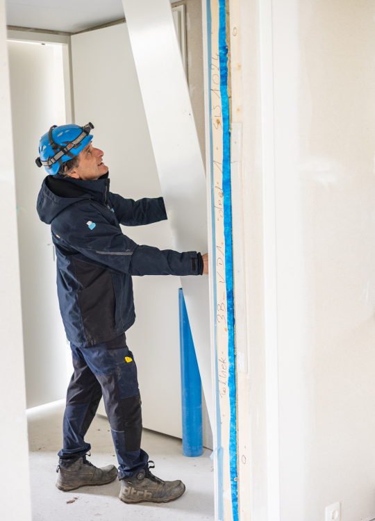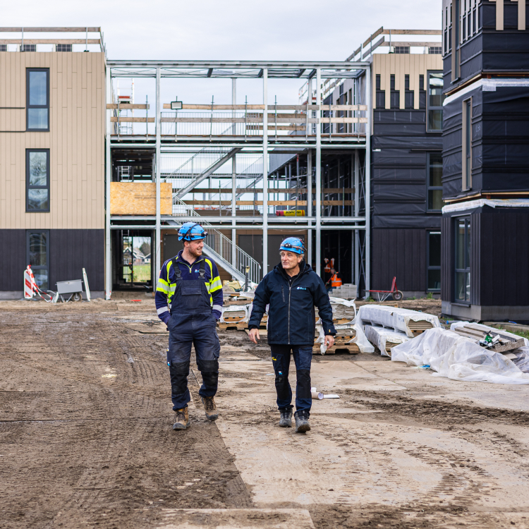 Hoe snel hier gewerkt wordt. Van niks naar een hele rij woningen, dat is echt indrukwekkend. En alles is goed georganiseerd: iedereen weet wat hij moet doen, van plaatsen tot de gevelbekleding. De uitvoerders zorgen voor een goede verdeling van het werk. Het is niet één iemand die alles doet, maar iedereen die precies weet wat zijn taak en doel is. Alles verloopt heel projectmatig. Dat gaf me meteen een goed gevoel bij het team en het werk.
